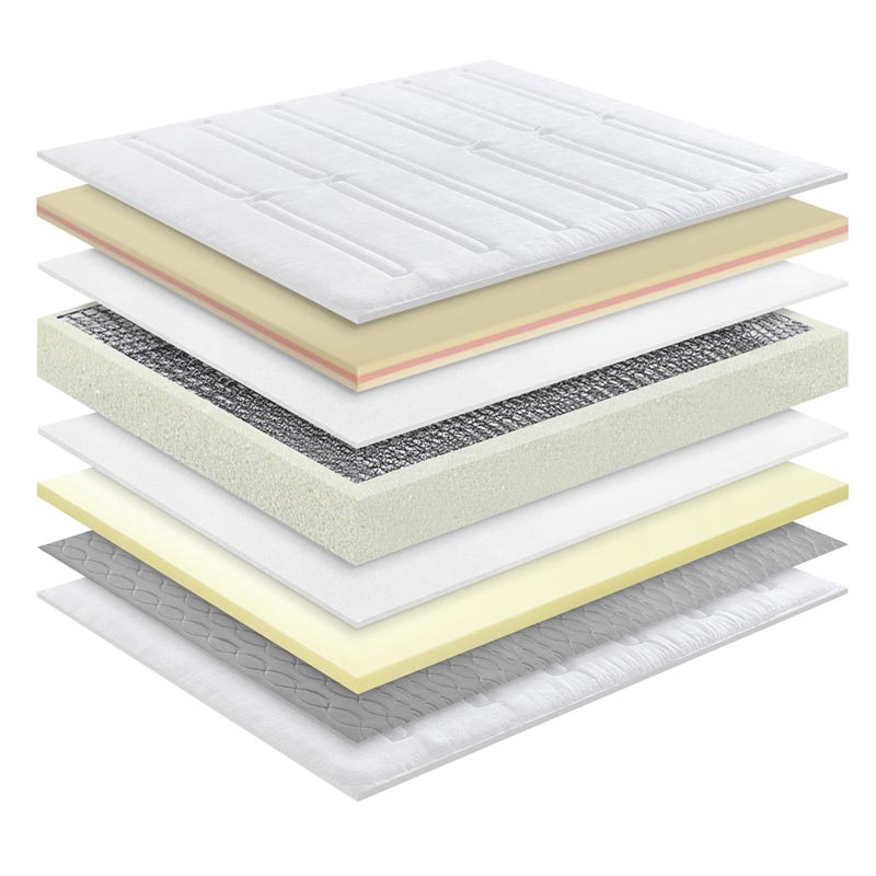 Esta camada desempenha um papel fundamental no equilíbrio entre suavidade e suporte, ao mesmo tempo que mantém o colchão respirável.