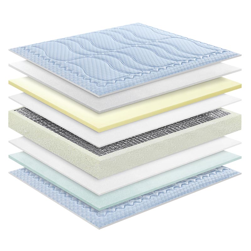 O colchão inclui uma camada de esponja de alta densidade, concebida para proporcionar: